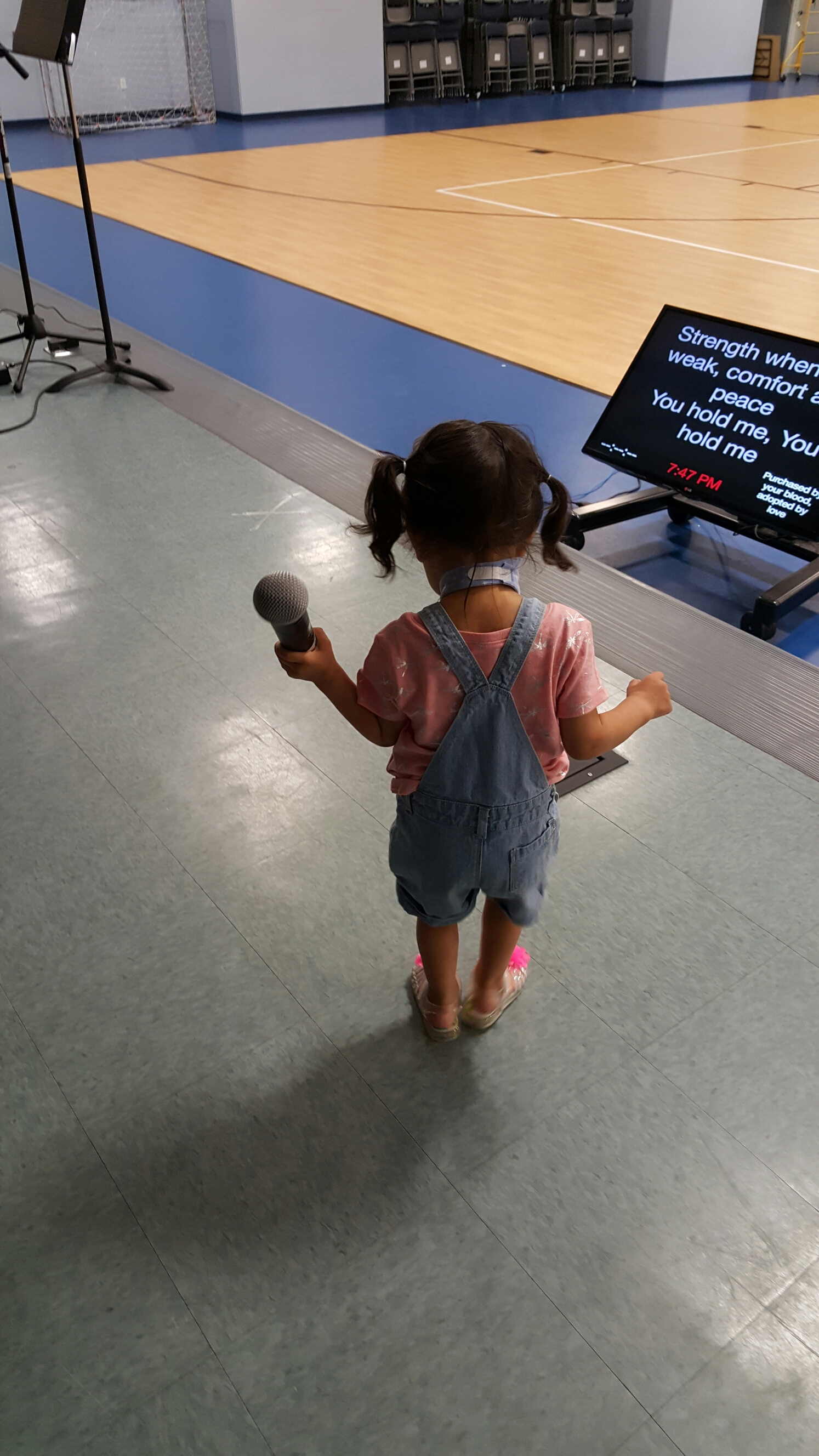 Amelie stole my mic. She wanted to participate in rehearsal.