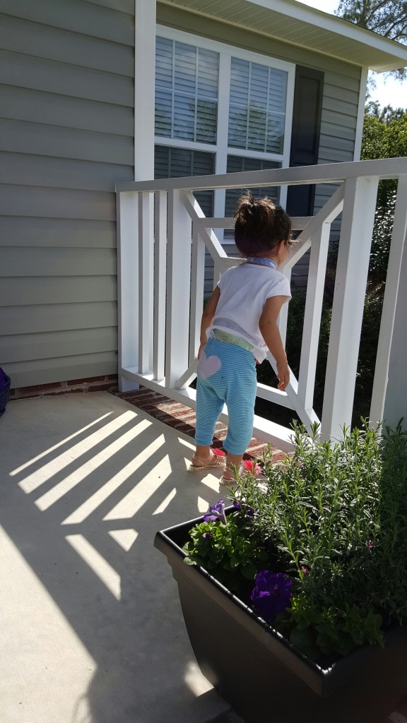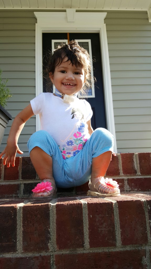 Exploring with smiles Image ~ May 4, 2016August 24, 2016 ~ Dania De Jesus ~ Leave a comment Amelie Claire. Mastering the brick stairs to walk around on greener pastures! 😁
